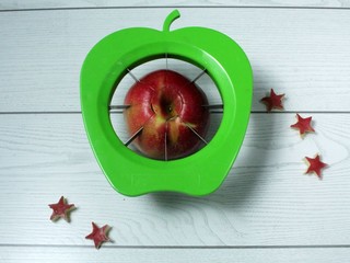 Lavate bene la mela mantenendo la buccia e, con l’aiuto di un tagliamela, dividetela in 8 spicchi