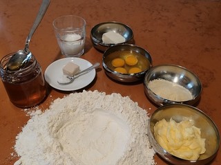 Setacciate la farina sulla spianatoia, formate un incavo al centro, sbriciolate il lievito all’interno e fatelo sciogliere aggiungendo il latte tiepido. Iniziate a impastare unendo le uova sbattute, il miele, lo stracchino e il Grana. Quando l’impasto prenderà forma e comincierà a cordare sviluppando il glutine, unite il sale e il burro molto morbido a fiocchetti, fino ad ottenere un impasto liscio e omogeneo, molto più morbido dell’impasto della pizza. Se preferite effettuate l’impasto con l’impastatrice. Mettete l’impasto in una capace ciotola unta di olio, coprite con pellicola o con un panno e fate lievitare per almeno 2 ore a 26-28 °C (dovrà più che raddoppiare).