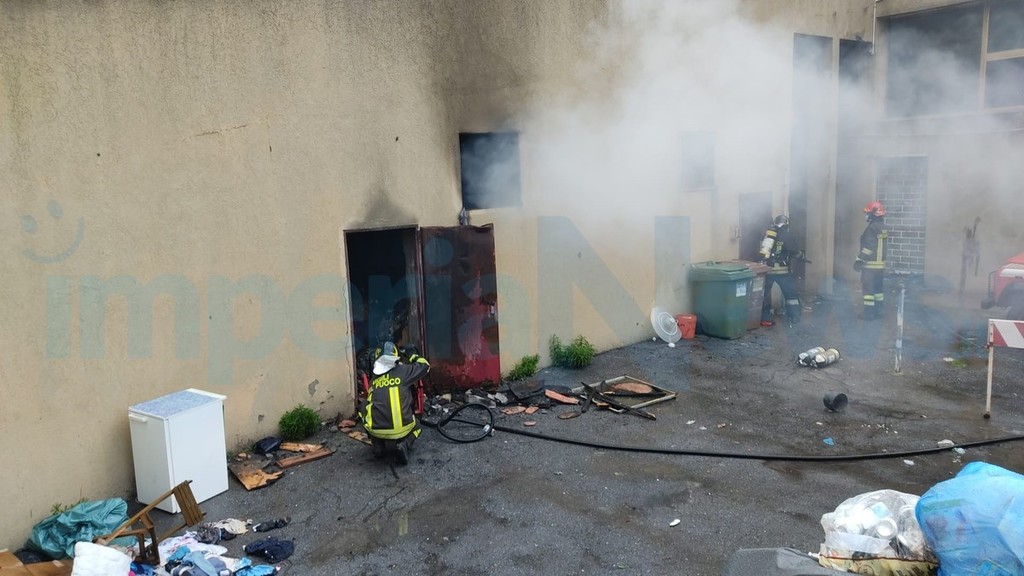 Un incendio è divampato, nel primo pomeriggio di oggi, all'interno di un magazzino in via Airenti, le cosiddette 'case parcheggio' a Imperia.