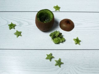 Tagliate la calotta del kiwi e scavatelo con l’ausilio di un cucchiaino, tenendo da parte la polpa