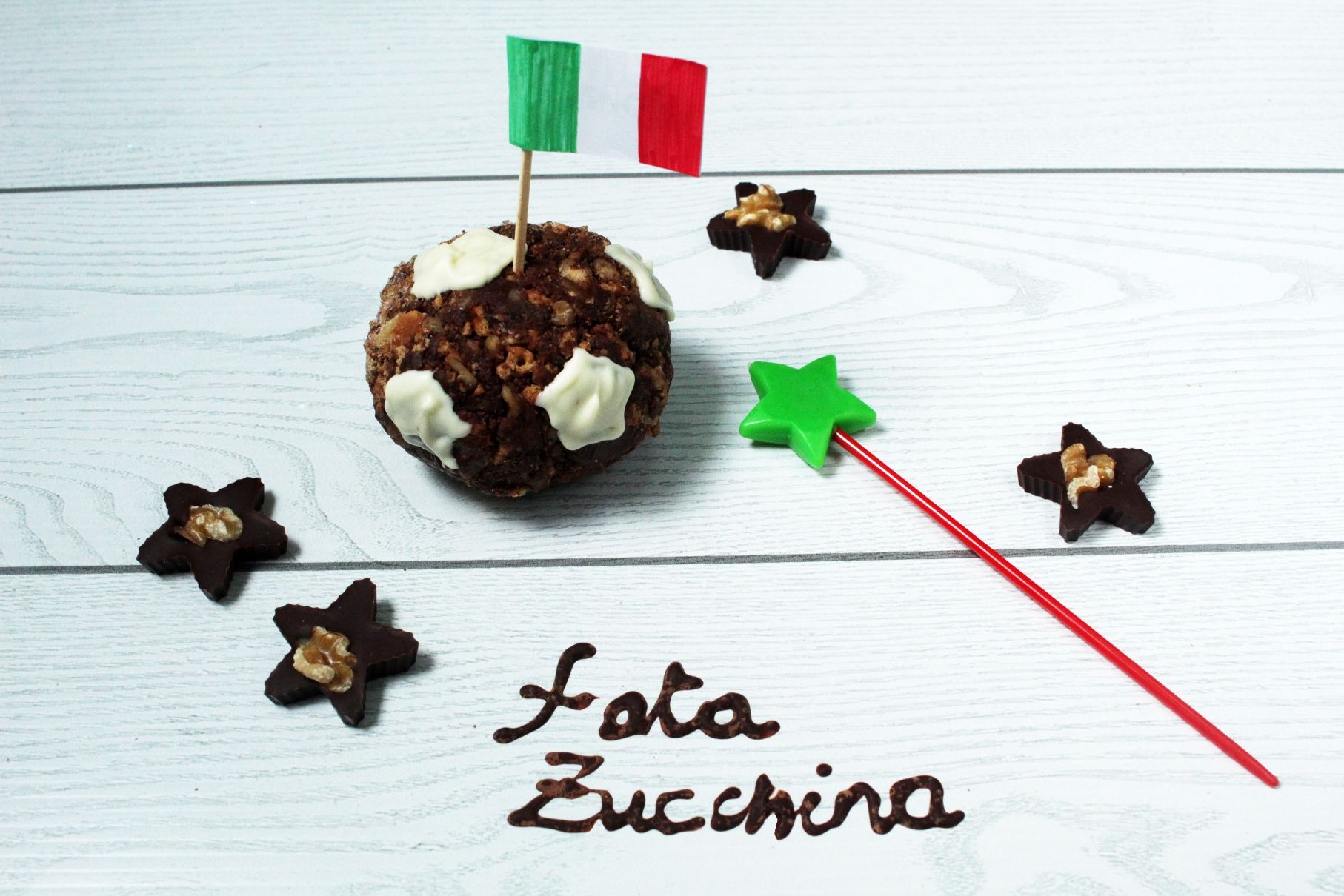 Decorate i palloni con pentagoni di cioccolato bianco fuso (come quelli da calcio)