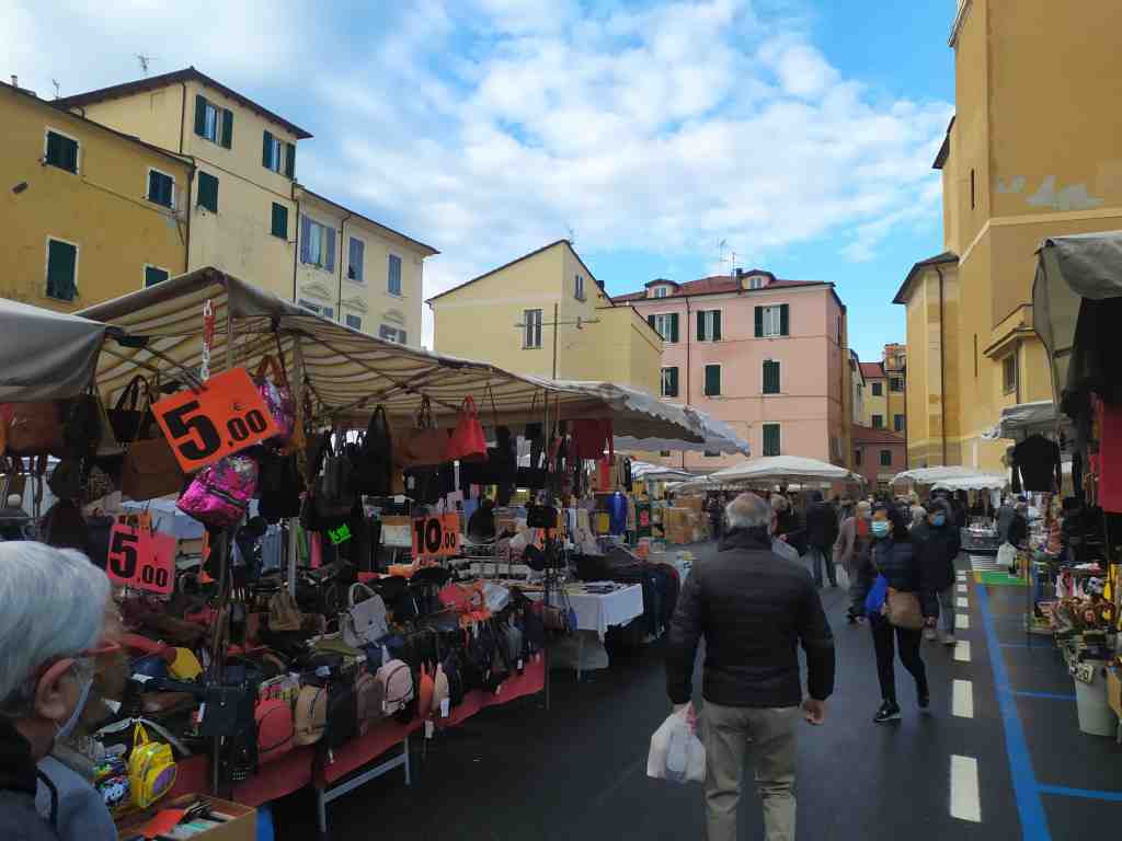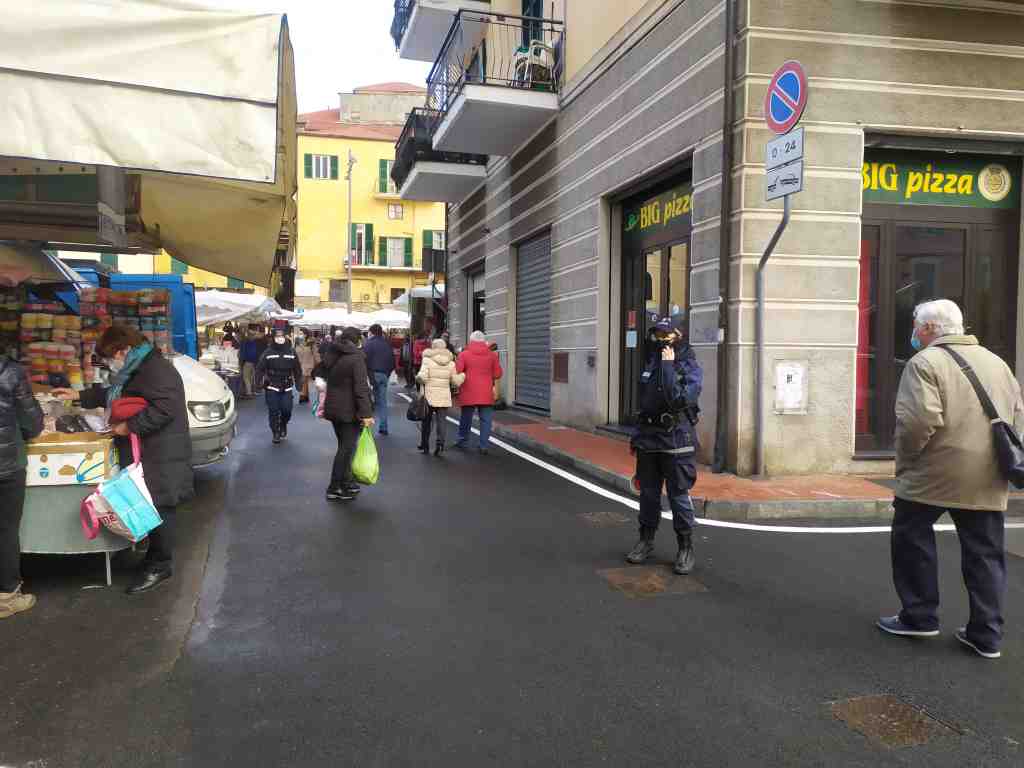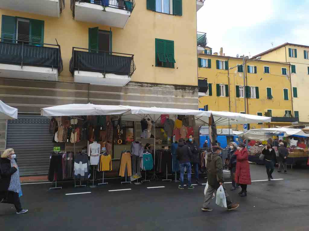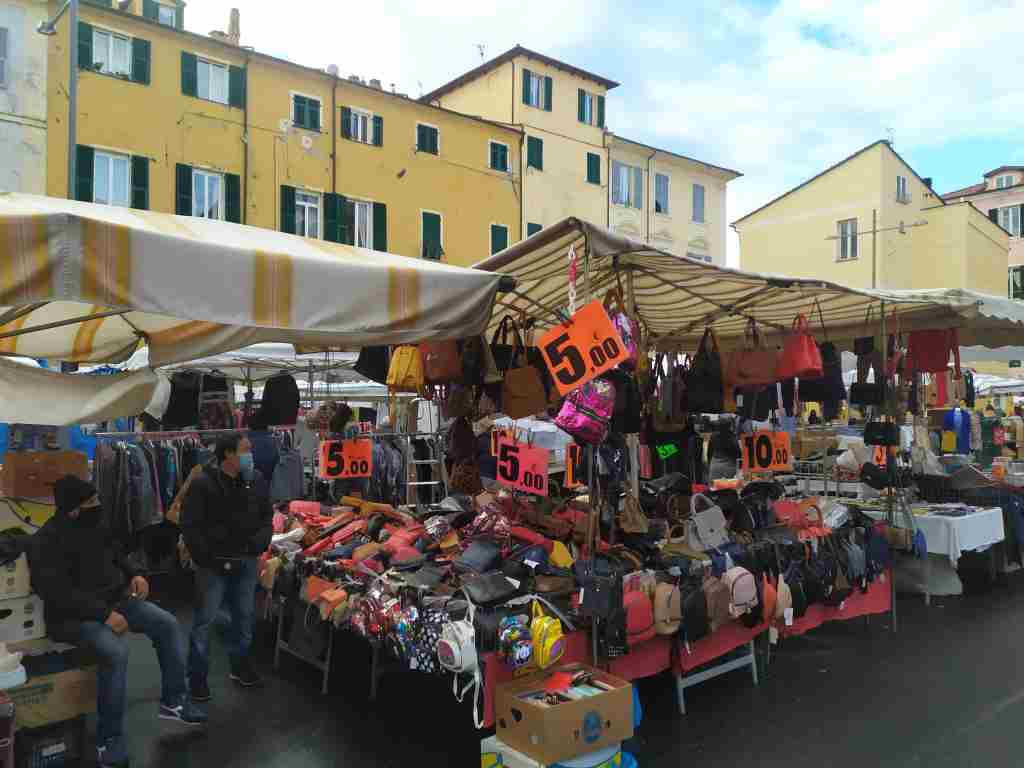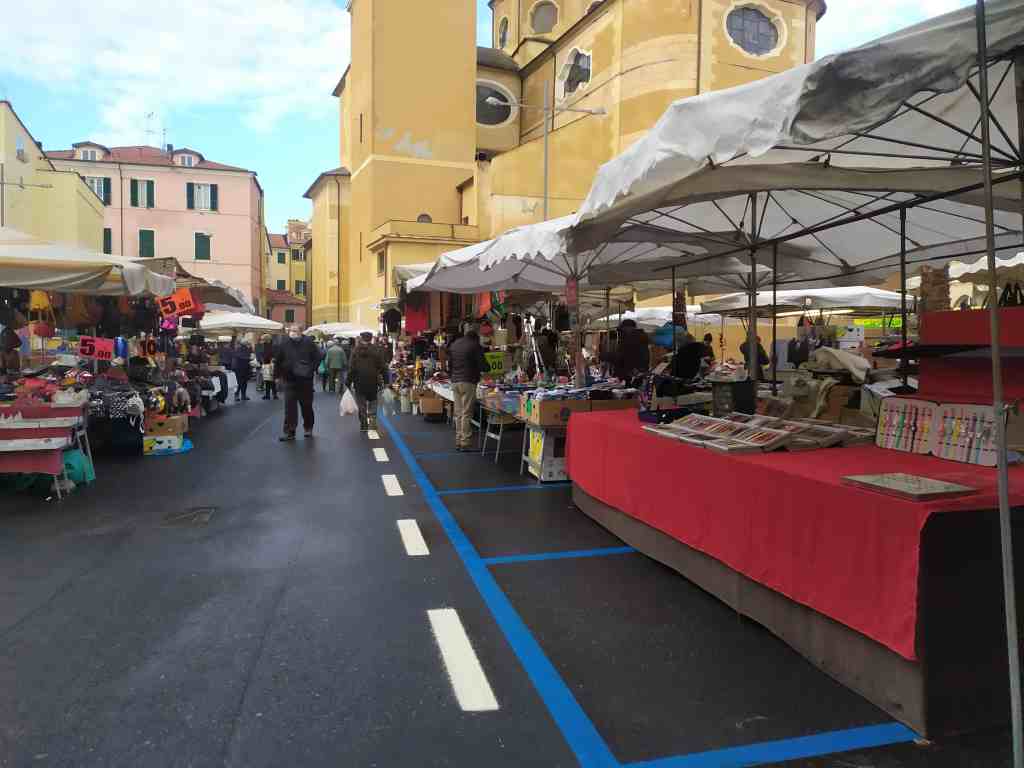 Primo giorno di mercato a Oneglia, nella nuova piazza Goito ristrutturata per garantire maggiore spazio e migliorare le condizioni di sicurezza, al di là dall'emergenza coronavirus. Il mercato è stato allargato e prevede adesso i banchi anche in piazza Maresca.