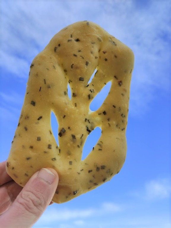 "Una focaccia realizzata artigianalmente dal Panificio Fratelli Lia, con ingredienti semplici e a partire dalla farina di grano tenero, dal lievito madre, all'olio extravergine di oliva ed impreziosita in questo caso da cipolla egiziana coltivata nella Val Nervia. - sottolineano - Il "Panificio Fratelli Lia" di Camporosso non è soltanto conosciuto per la vasta produzione di prodotti da forno, genuini e senza conservanti, che quotidianamente offre alla clientela, ma anche per l'impegno a utilizzare prodotti del territorio e a riscoprire le ricette tipiche della zona. Proseguendo questa attività di ricerca è stata avviata la produzione oltre che della Fougassetta anche di antichi prodotti da forno e specialità dolciarie come i biscotti "Belinetti", i "Petali di Sanremo", le Bane e i Barbagiuai dolci".