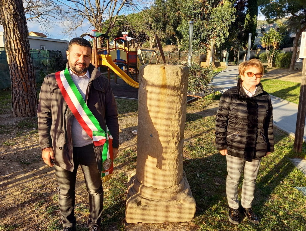 Nella foto la visita alla colonna che ricorda l’ingresso del campo di concentramento del Sindaco e dell’Assessore delegata alla Cultura di Vallecrosia.