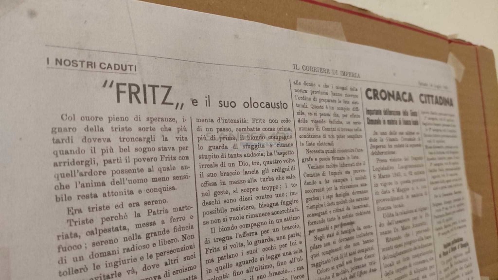 L’Unione Culturale Democratica A.N.P.I. Bordighera di via al Mercato 8, apre le sue porte alla mostra in occasione della Giornata della Memoria per commemorare le vittime della Shoah. L’iniziativa promossa da Giorgio Loreti, appassionato ed encomiabile, è un’esposizione di opere d’arte e documenti storici, vere e proprie testimonianze costituite da pagine prese da quotidiani dell’epoca che raccontano e denunciano non solo grazie alle parole stampate su carta, ma si fanno veicolo di viaggio nel tempo come porta aperta sugli anni più bui del novecento e di come venne vissuto il tragico periodo nella nostra provincia.