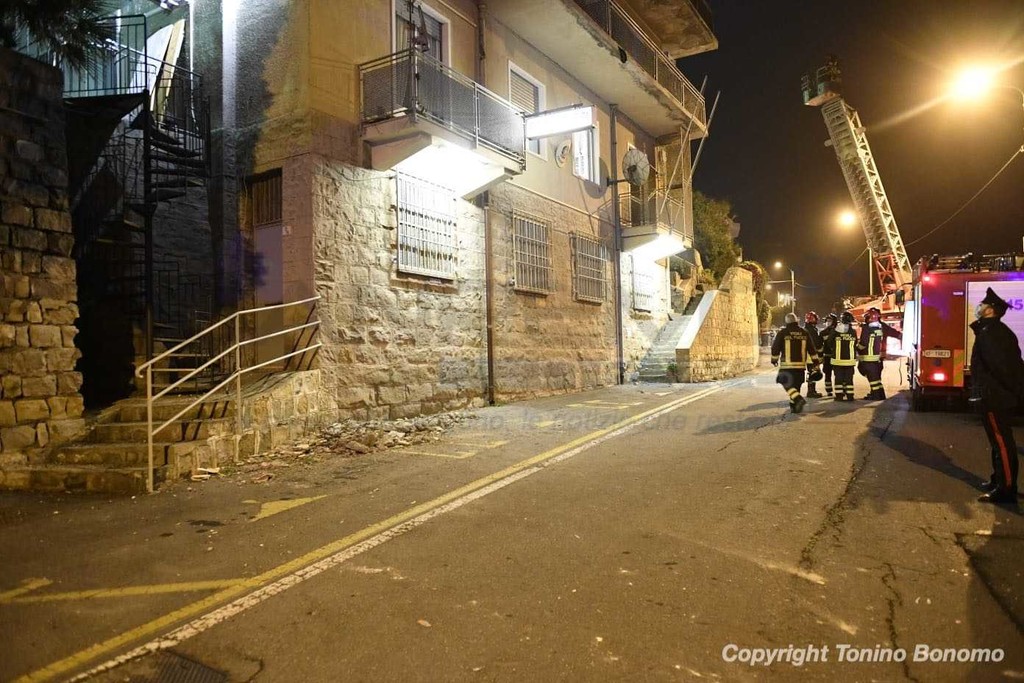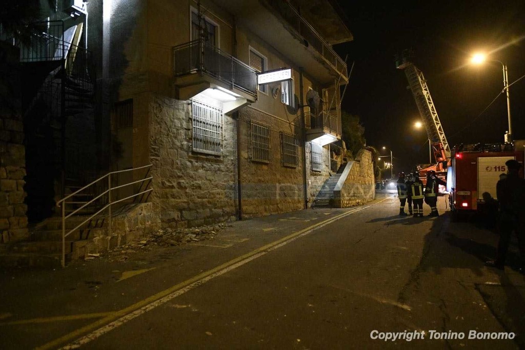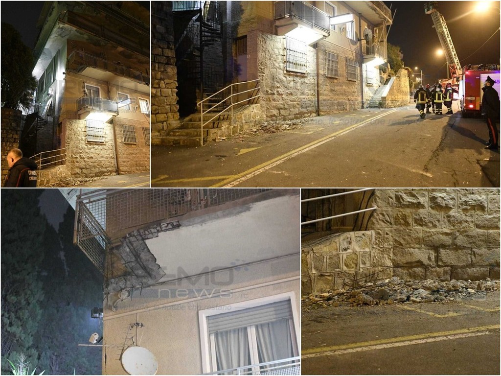 Intervento dei Vigili del Fuoco in serata per il crollo di calcinacci da un terrazzo della caserma dei Carabinieri di Ospedaletti. Un pezzo della struttura si è staccato finendo di sotto.