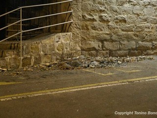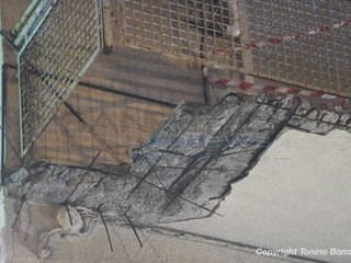 Intervento dei Vigili del Fuoco in serata per il crollo di calcinacci da un terrazzo della caserma dei Carabinieri di Ospedaletti. Un pezzo della struttura si è staccato finendo di sotto.