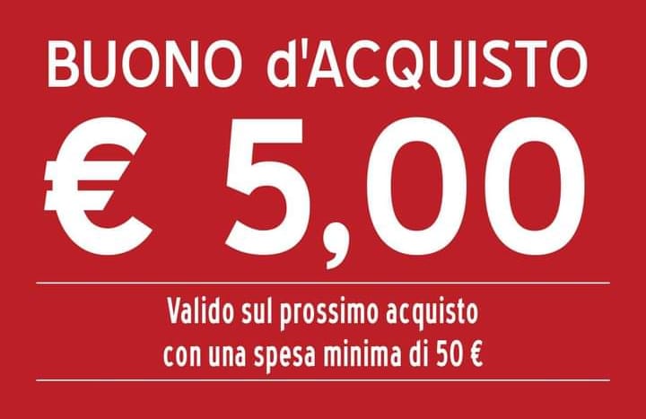 In queste settimane è possibile ritirare dei buoni sconto del valore di 5 euro cumulabili e validi sui prossimi acquisti per una spesa minima di 50 euro.