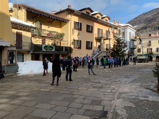 Anche i dipendenti dei comprensori della Riserva Bianca di Limone Piemonte, così come tutti gli operatori della neve in provincia di Cuneo, hanno partecipato nella mattinata di oggi (venerdì 5 febbraio) alla manifestazione “Per chi suona la montagna”, flashmob ideato da Marco Di Marco, direttore della rivista Sciare magazine. In molti con le “tute da lavoro”, distanziati e con mascherina hanno ascoltato alle ore 10 il rintocco delle campane della chiesa di San Pietro in Vincoli, antistante alla piazzetta del municipio nella capitale della Valle Vermenagna.