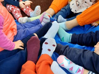 Per questo motivo le educatrici hanno coinvolto i bambini in giochi e attività di scoperta, come ad esempio: dalla marionetta con i calzini alla ricerca della coppia persa, osservando i vari disegni e colori. E’ con l’evento di oggi che l’equipe educativa ha voluto sensibilizzare le famiglie e i bambini che frequentano il servizio ad adottare un “nuovo” sguardo verso le diversità, un significato sociale volto a spronare al rispetto reciproco verso chi è diverso da sè; i calzini sono la metafora del fatto che colore, lunghezza, forma e dimensione non cambiano la natura delle cose: sempre calzini restano.