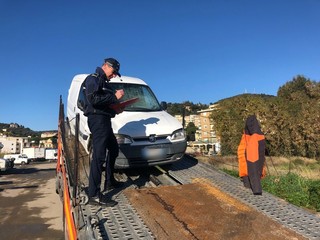 Imperia, lotta al degrado: rimosse dalla polizia locale molte auto abbandonate tra Oneglia e Caramagna (foto e video)