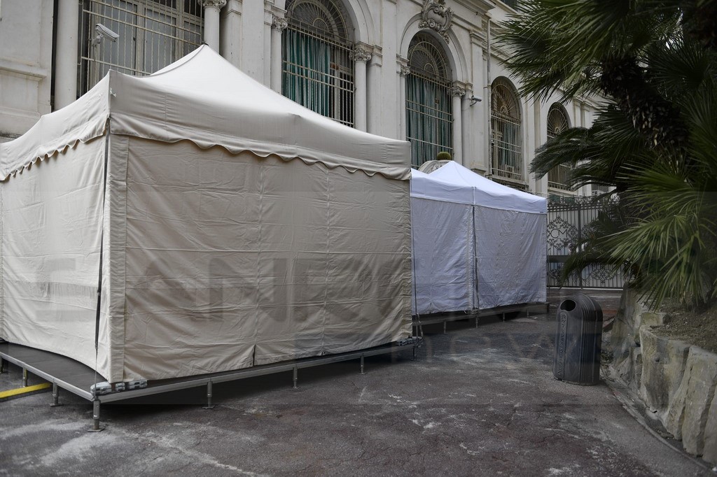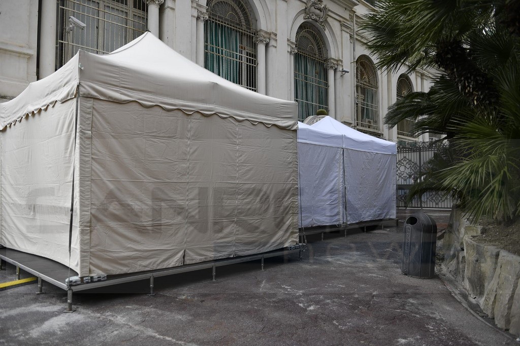 Festival di Sanremo: allestite le tende per eseguire i tamponi al personale Rai all'Ariston e al Casinò (Foto)