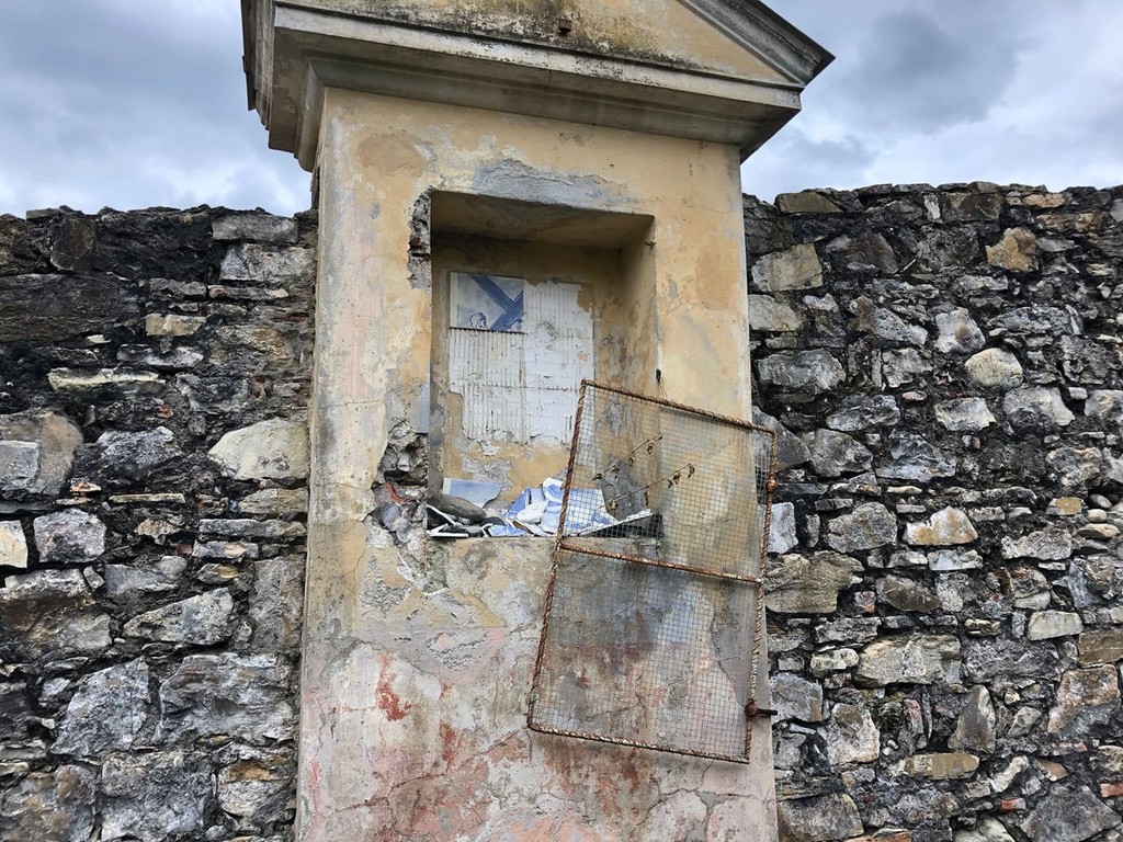 Imperia, vandali in azione a Porto Maurizio: distrutta un'edicola votiva lungo la scalinata del monte Calvario (Foto)