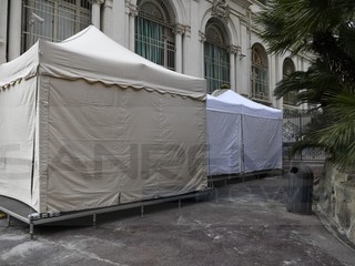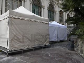Festival di Sanremo: allestite le tende per eseguire i tamponi al personale Rai all'Ariston e al Casinò (Foto)