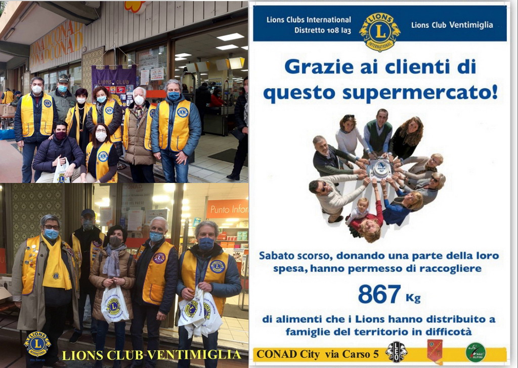 Un ringraziamento particolare da parte di tutti i soci dei Lions Club della Zona 4B del Distretto 108 Ia3, è dedicato alla grande solidarietà dei clienti dei supermercati, che hanno contribuito a donare una parte della loro spesa per la 'Raccolta Alimentare'. Tutte le derrate alimentari, sono già state consegnata a Parrocchie e Empori solidali, dove i prodotti di prima necessità raccolti (pasta, olio, sale, zucchero, biscotti, omogeneizzati, latte, carne e pesce in scatola), saranno distribuiti a centinaia di famiglie del territorio in difficoltà.