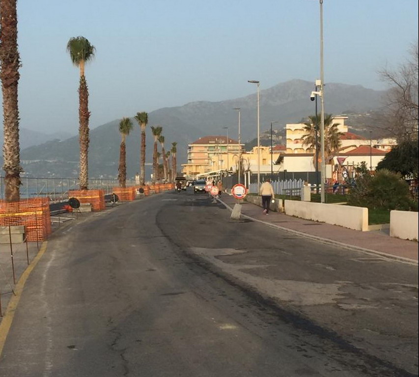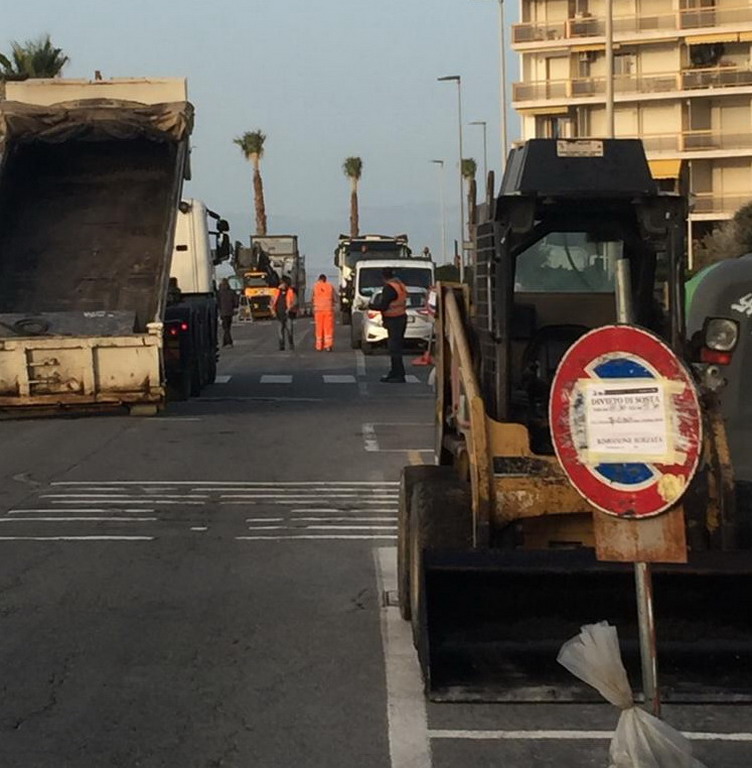 Nuovi asfalti sul Lungomare Varaldo a Ventimiglia, fino a via Nervia. Al termine del primo stralcio dei lavori della nuova ciclabile (per motivi di rendicontazione da effettuarsi obbligatoriamente per lotti), e visto lo stato disastroso della carreggiata, sono iniziati questa mattina i nuovi asfalti.