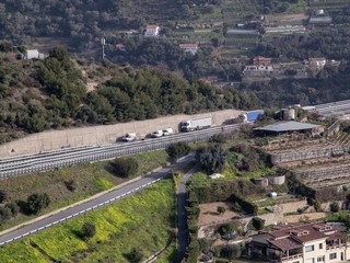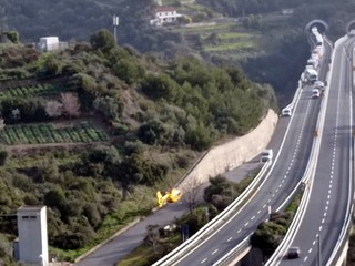 Sanremo: scontro tra un furgone e un camion in autostrada, intervento dell'elicottero (Foto)