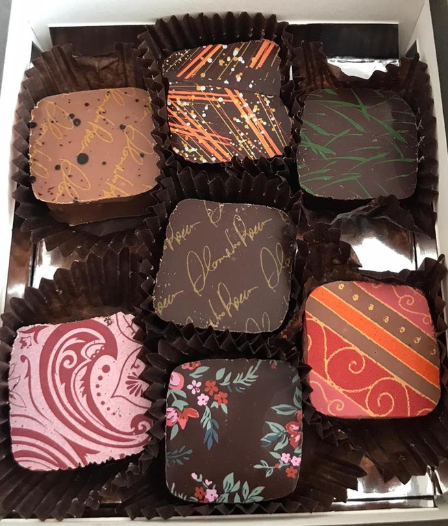 Nello specifico, la pralina rivestita con cioccolato al latte racchiude una ganache al cioccolato bianco infusa con la lavanda Imperia creando una nota floreale particolarmente stuzzicante. Gli altri cioccolatini che fanno parte della confezione sono realizzati con altre tipicità del Ponente Ligure: agrumi (crema agli agrumi dalle note fresche ed aromatiche racchiusa in un guscio al cioccolato fondente 70%), rosmarino (il pralinato al 60% di mandorle e rosmarino crea con il cioccolato fondente un abbinamento intenso e inconfondibile), rosa (Pralina rivestita con cioccolato fondente al 70% racchiude una ganasce profumata con olio essenziale di rosa. Il suo sapore astringente è perfettamente equilibrato alle note amare del cioccolato), olio “EVO” (le note fruttate dell’olio EVO Riviera Ligure di Ponente abbinate al cioccolato fondente 70% conferiscono eleganza e freschezza a questa pralina esclusiva), fior d’arancio (pralina che racchiude una crema morbida dal profumo delicato dei fiori d’arancio) e violetta (pralina rivestita con cioccolato fondente al 70%, racchiude una morbida crema di cioccolato al latte al profumo di violetta dal gusto caldo e delicato).