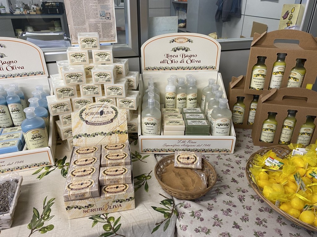 La profumatissima linea alla lavanda è da sempre una delle più apprezzate a livello locale ma il best seller del saponificio rimane la linea al limone, molto apprezzata dagli stranieri e soprattutto dal Nord Europa. Un’altra specialità dell’azienda è la saponetta Scrub all’olio di oliva che contiene dei microgranuli ricavati dai noccioli delle olive, questi ultimi svolgono un’azione esfoliante sulla pelle.