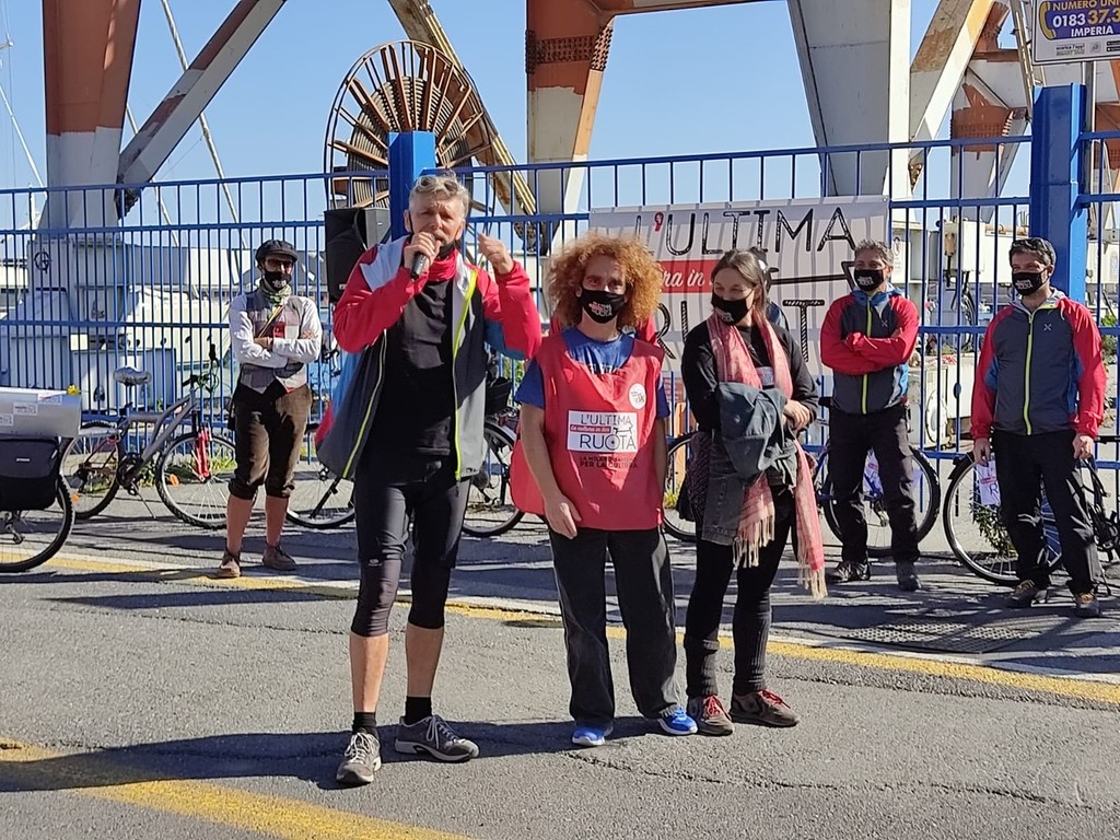 Queste sono solo alcuni dei passaggi della lettera, letta oggi pomeriggio in Calata Cuneo a Imperia, dai lavoratori dello spettacolo, da oltre un anno in ginocchio a causa delle chiusure imposte dalla crisi pandemica. Attori, musicisti, tecnici, fotografi di scena, solo per citare alcune delle categorie rappresentate oggi, hanno fatto tappa già da stamani nella nostra città nell’ambito dell’iniziativa de 'L'ultima ruota', una "pedalata" che da Milano arriverà questo pomeriggio in piazza Colombo a Sanremo e a proprio a Sanremo, gli artisti consegneranno le lettere scritte da tutta Italia direttamente nelle mani di Amadeus e Fiorello affinchè sul palco dell’Ariston possano rappresentare il grido di dolore di tutto il settore.