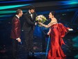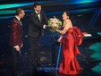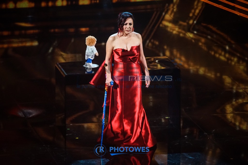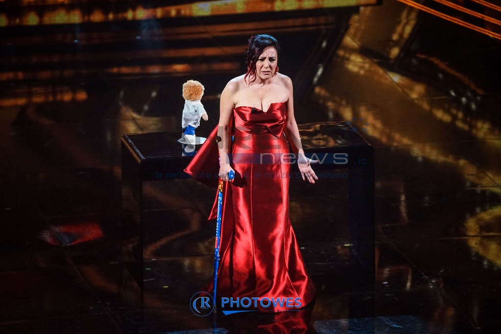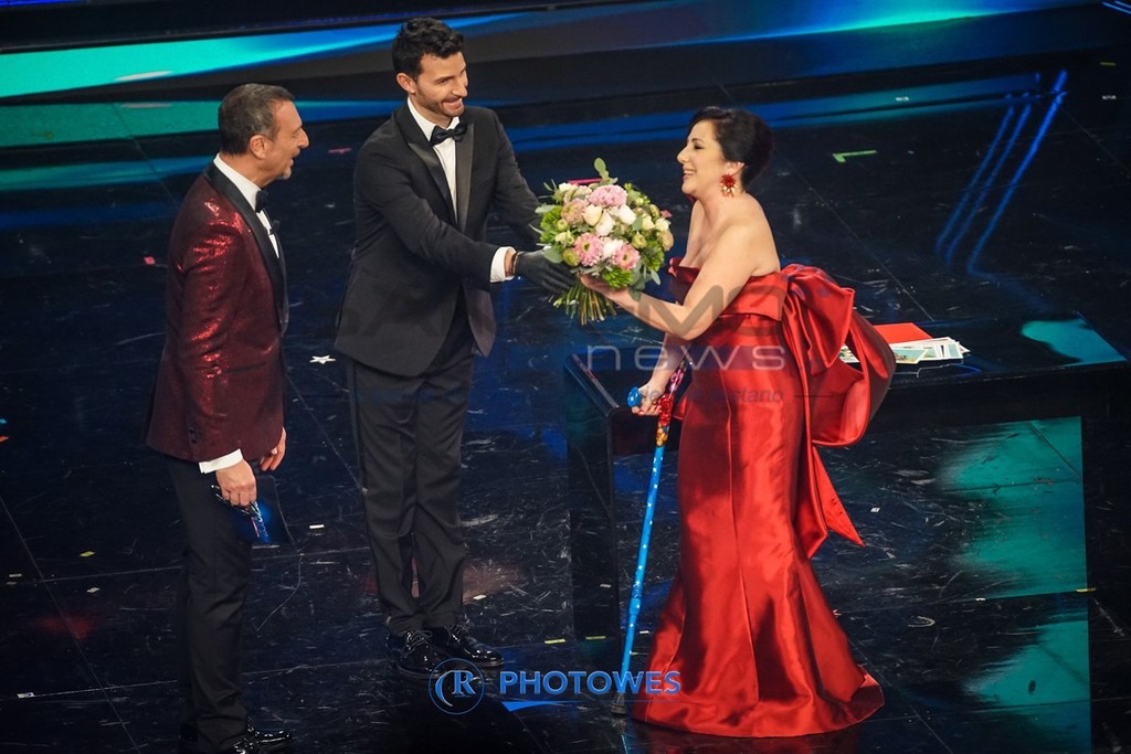 Sorride Antonella Ferrari calcando la scena e ringrazia Amadeus “Dopo un anno senza lavorare, questo è ossigeno puro”.