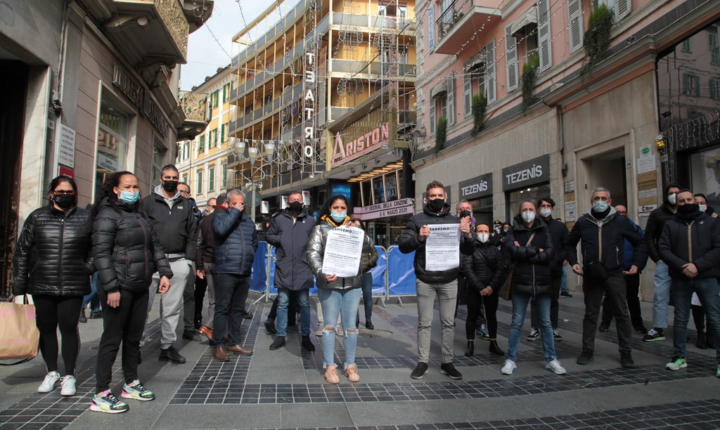 Improvvisa serrata di protesta dei bar intorno al Teatro Ariston di Sanremo. Per un giorno, i numerosi locali che si affacciano su piazza Colombo, via Matteotti, via Cavour, via Palazzo e via Gaudio hanno deciso di chiudere. Così è stato interrotto per protesta anche il servizio di asporto, unico autorizzato insieme al delivery alla sera.