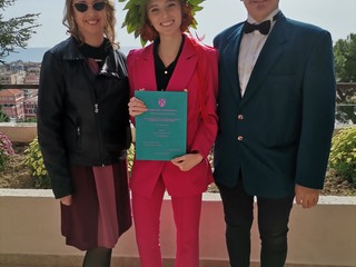 infatti la sua laurea si è svolta on-line come vuole il protocollo. Una laurea in lettere musica e spettacolo. Roman Dialogué "Gabriel" di George Sand. Un augurio alla dottoressa Syria Castello da tutti i familiari per una carriera nel mondo del teatro.
