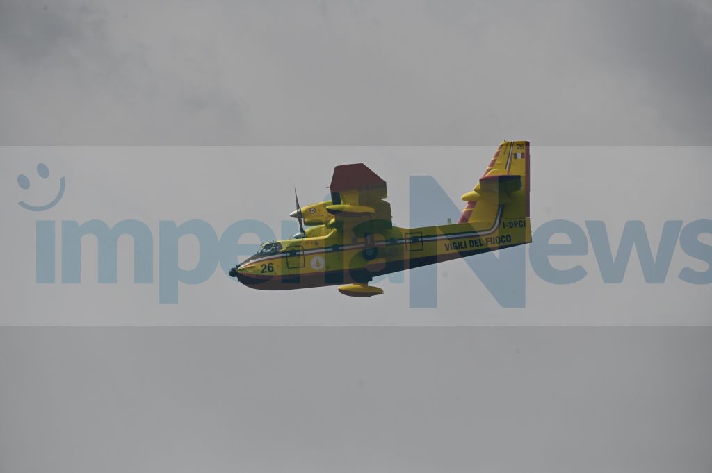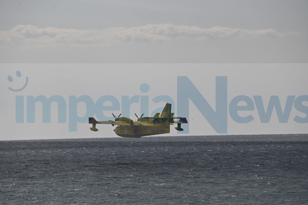 Chiusanico, incendio nei boschi di Torria: in azione anche l'elicottero dei vigili del fuoco e due Canadair (foto)