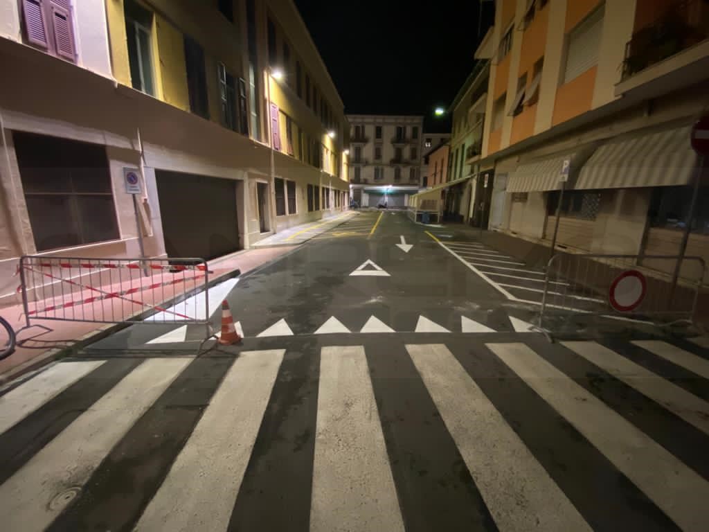 Nel corso della notte gli operai del Comune hanno lavorato per la sistemazione dell’arteria e per la tracciatura della segnaletica orizzontale e, questa mattina, la strada è percorribile da via Aprosio in direzione di via Roma e lungoroya G. Rossi.