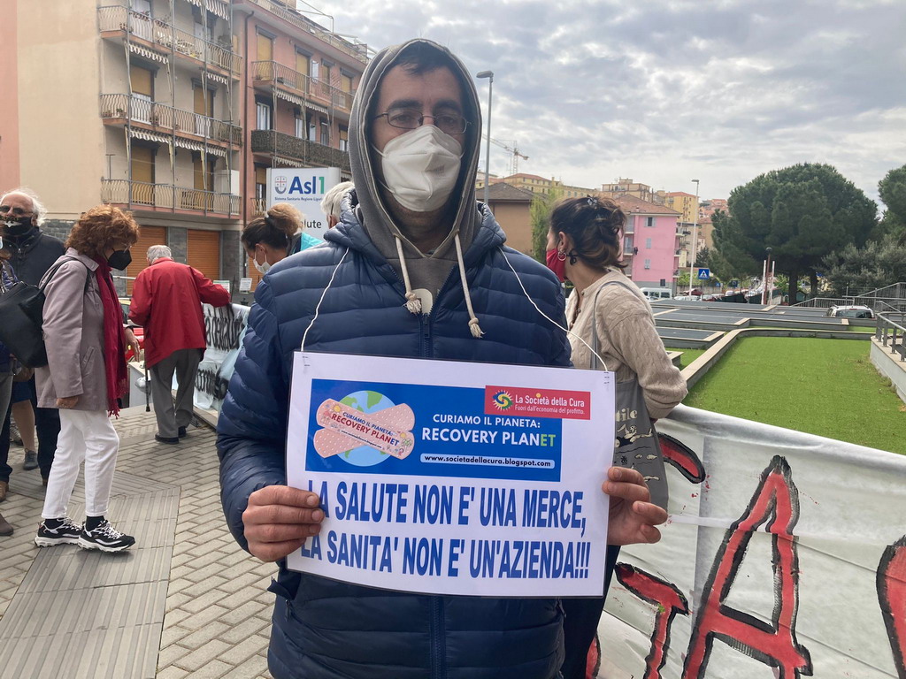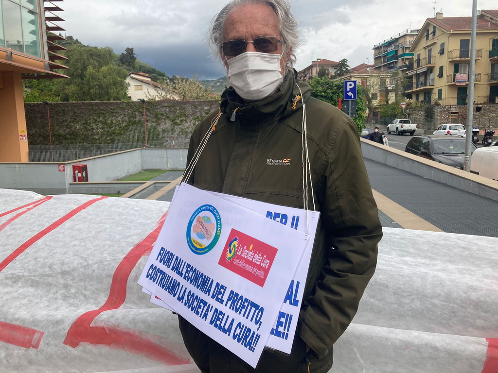 Per questo la ‘Società della Cura’ è scesa stamattina in piazza, non solo a Imperia, con azioni simboliche e rispettose delle misure di emergenza dettate dalla pandemia per presentare il suo ‘Recovery Planet’, un piano alternativo di proposte per contrapporre il 'prendersi cura' alla predazione del pianeta, la cooperazione solidale alla solitudine competitiva, il 'noi' dell'uguaglianza e delle differenze all'io del dominio e dell'omologazione.