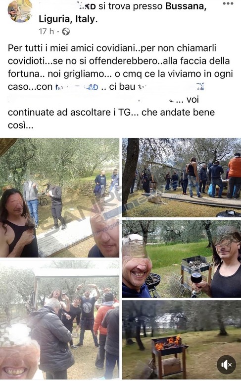 Sanremo: a Bussana l’assurda grigliata dei negazionisti “Per tutti i covidioti noi grigliamo, voi continuate ad ascoltare i TG” (Foto)