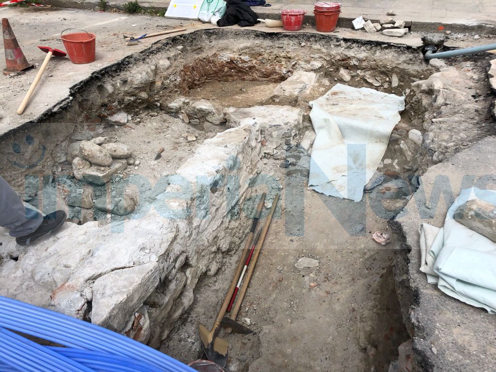 Gli operai impiegati nei lavori di posizionamento della fibra ottica hanno "portato alla luce" alcuni resti antichi. La "scoperta" è avvenuta a pochi metri dalla chiesa di Loreto, alla spianata Borgo Peri.