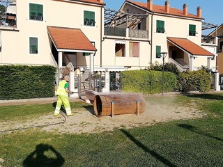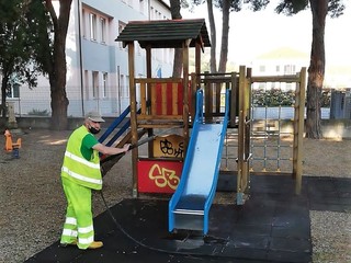 In vista della riapertura dei parchi giochi, da lunedì 26 aprile, la ditta Egea, che ha in appalto il servizio a San Bartolomeo al Mare, ha effettuato e sta effettuando la sanificazione di tutti i giochi in tutte le aree: Giardini Marco Polo, Via della Resistenza, Via Carlo Conti, in Lungomare delle Nazioni, Giardinetti Case cooperative (Via Manzoni e Via dello Spuntone), Pairola (Via Ruvoa), Chiappa (zona Cippo romano).