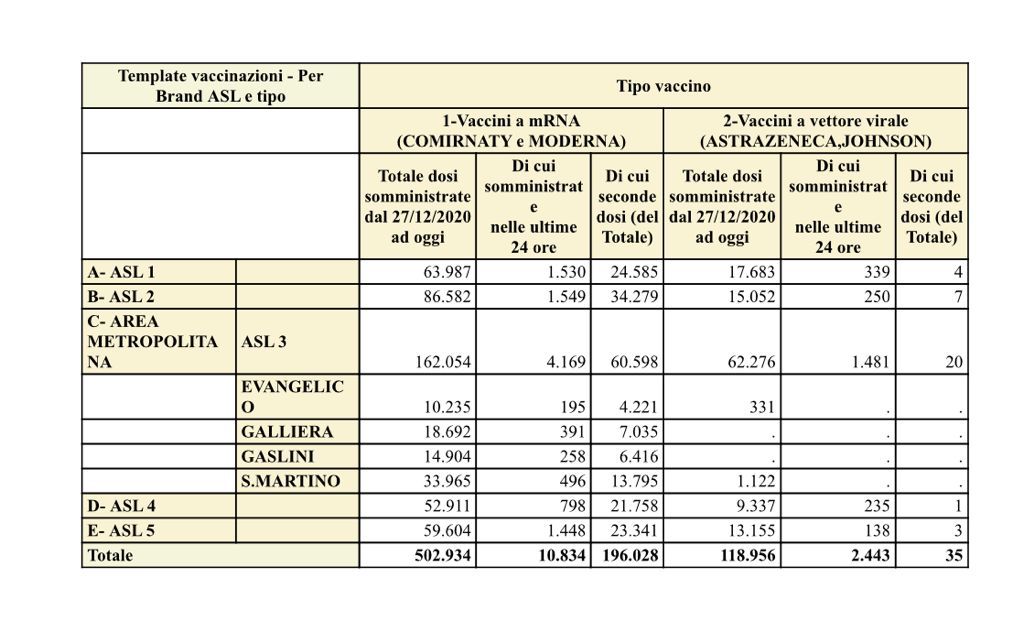 Si registrano sei decessi e nessuno di questi è avvenuto in Asl 1 dove c'è un lieve calo degli ospedalizzati e anche dei posti in terapia intensiva, ma un aumentano le persone in sorveglianza attiva (+49)