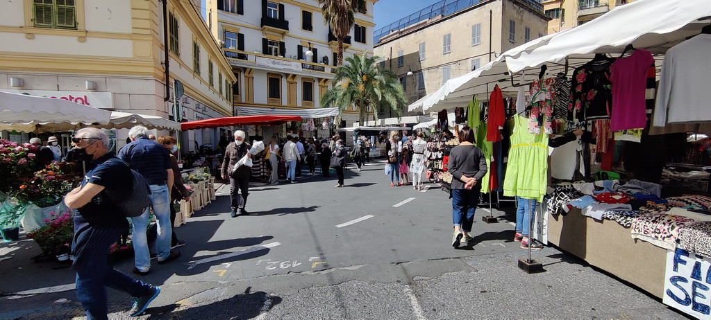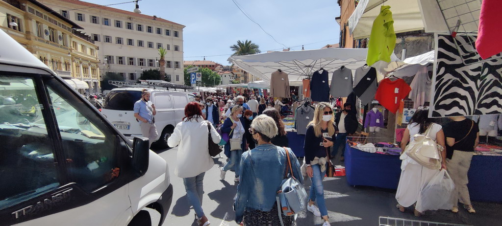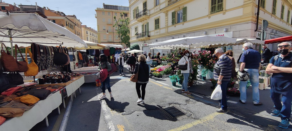 Primo giorno di mercato a Sanremo con tanti clienti. Dopo mesi e mesi di ‘lacrime e sangue’ e il cattivo tempo di sabato scorso, il sole e il caldo hanno riportato tanta gente in piazza Eroi, tra le bancarelle che non erano così gremite dall’estate scorsa, quando erano state spostate sul lungomare Calvino.