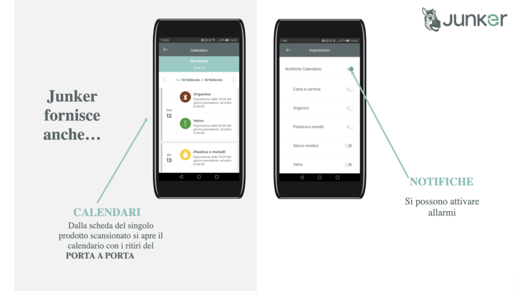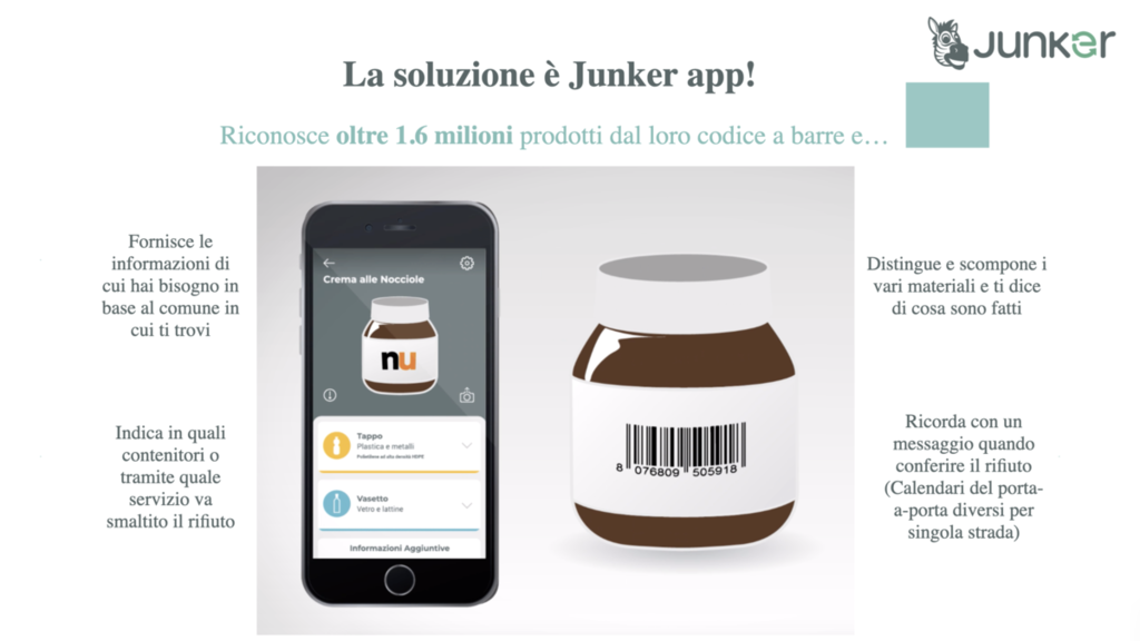 La app 'Junker' permette di scoprire il corretto conferimento di un prodotto semplicemente fotografando il codice a barre, ma non mancano anche le informazioni sui diversi materiali utilizzati.