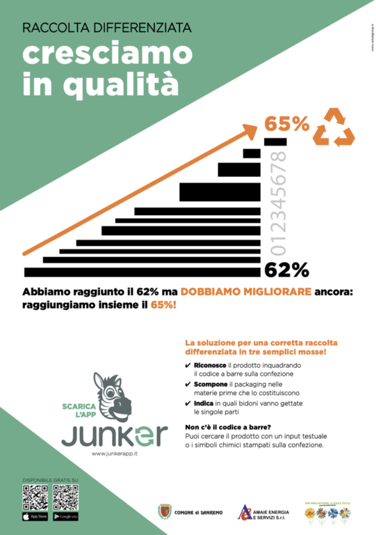 'Junker', disponibile in 10 differenti lingue e con accessibilità anche per non vedenti o ipovedenti, può anche inviare notifiche in caso di comunicazioni e racchiude tutti gli orari di conferimento stabiliti da Amaie Energia e Comune di Sanremo.