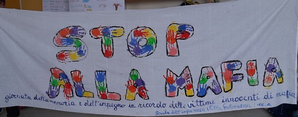 I bambini, guidati dalla responsabile alla legalità del plesso, Maria Andreacchio, hanno creato con le loro mani uno striscione che, da oggi è esposto sulla facciata dell’edificio che li ospita a Villa Palmizi.