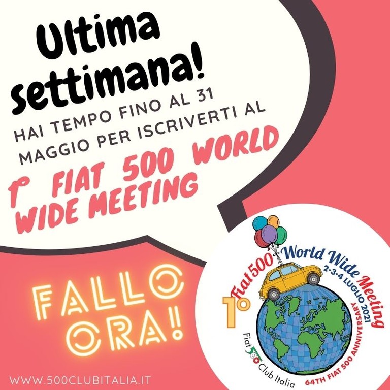 "Nei tre giorni, dal 2 al 4 luglio, ogni coordinamento in Italia ma anche nel mondo, organizzerà dei mini meeting dedicati alle Fiat 500 ma aperti soltanto agli iscritti al Fiat 500 club Italia. Ci si potrà iscrivere fino al 31 maggio sul sito del Fiat 500 club Italia (a questo LINK ndr), pagando la quota di 20 euro, si potrà partecipare agli eventi, solo del proprio coordinamento territoriale di appartenenza".