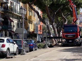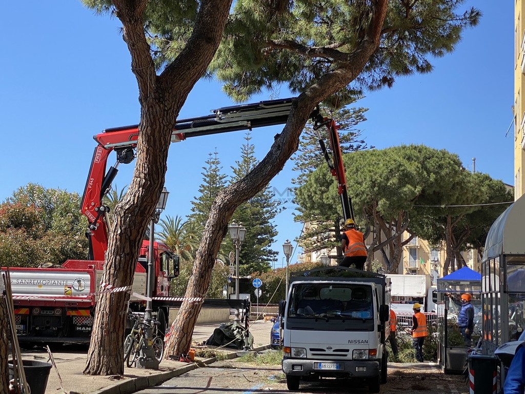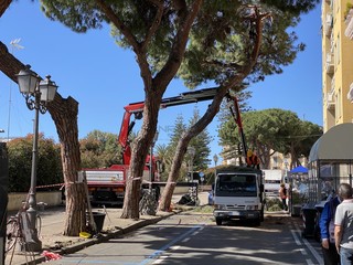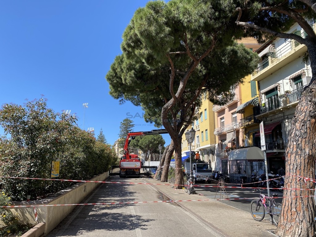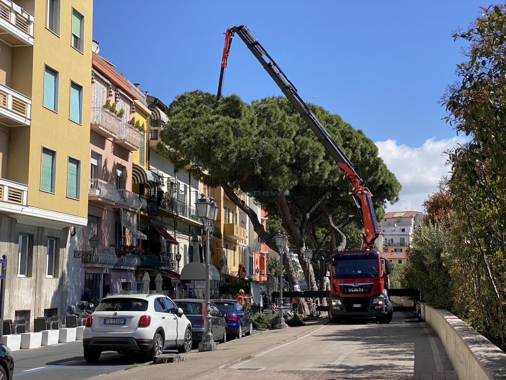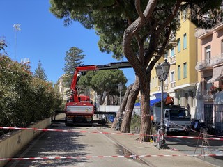 Sanremo: dopo il crollo di venerdì sera il Comune mette mano ai pini di via Nino Bixio (Foto)