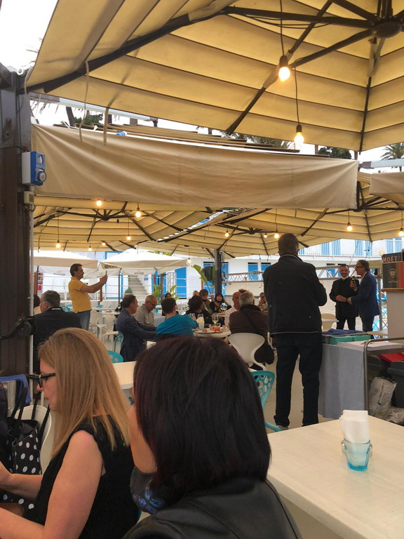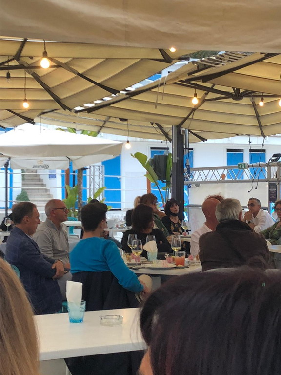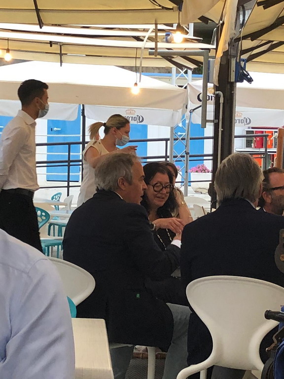 Presenti all’aperitivo anche consiglieri comunali, assessori e in particolare il Sindaco Alberto Biancheri, che ha descritto con entusiasmo i numerosi progetti strategici in cantiere a Sanremo per il biennio 2021-2022, tra cui il palazzetto dello sport nel riqualificato green park di Pian di Poma, il parking sotterraneo di piazza Eroi Sanremesi, che finalmente restituirà una piazza simbolo per i pedoni, la riorganizzazione dei parcheggi, con sistemi informativi evoluti in grado di orientare gli automobilisti alla ricerca dei posti disponibili, razionalizzando il traffico e altri progetti.