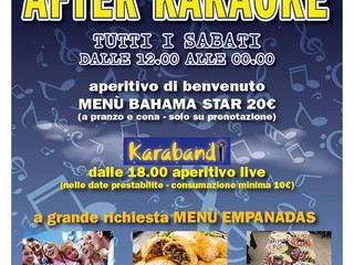 C'è voglia di estate e spensieratezza al Bahama Star di Valle Armea. Il titolare Alex Penna ha pensato di intrattenere i suoi ospiti ogni sabato con una maratona di buona musica, divertimento e ottimo cibo. L'iniziativa che prende il nome di ''After Karaoke' prevede di far trascorrere ai presenti una giornata all'insegna del divertimento a 360°, con due servizi, pranzo e cena, l'aperitivo delle 18 ed un menù a soli 20 euro, compreso quello a base di “Empanadas”.