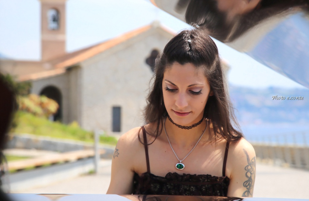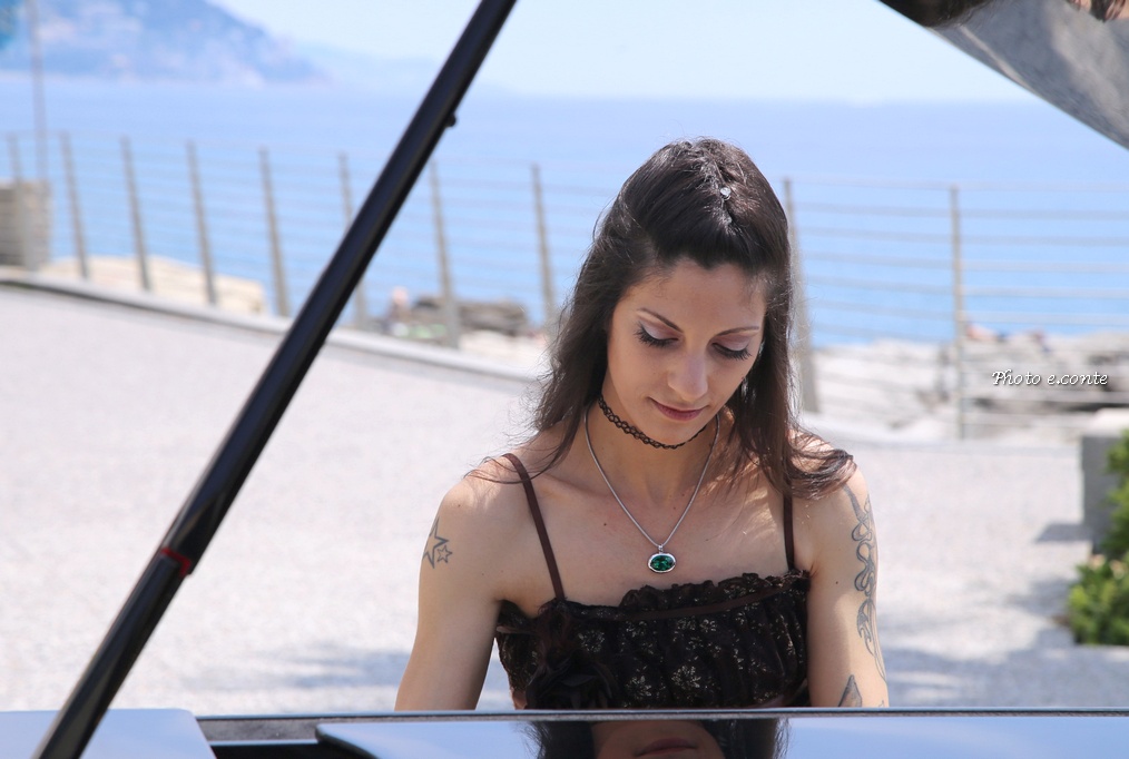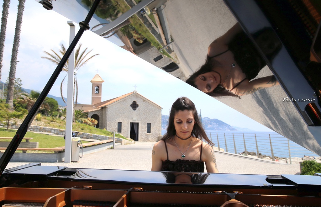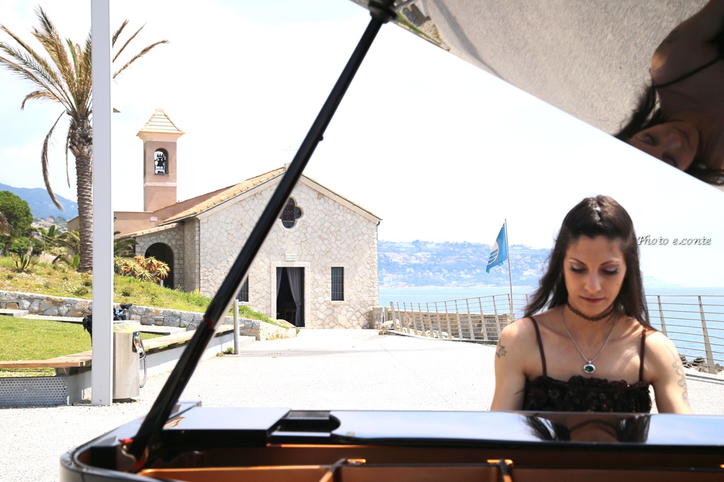 La famosa pianista del ponente ligure ha scelto quel luogo perché lo ritiene uno dei più belli della città, con la panoramica del nostro mare stupendo con i suoi famosi scogli dove la leggenda di Sant’Ampelio: “Durante una notte tempestosa su quegli scogli approdò un pescatore, Ampelio, che diventò il Santo Patrono della nostra città, dove in seguito sopra la grotta dove lui ripose il suo giaciglio, fu eretta la famosa chiesa in memoria del Santo”.