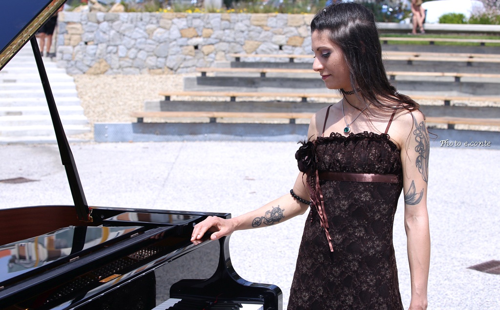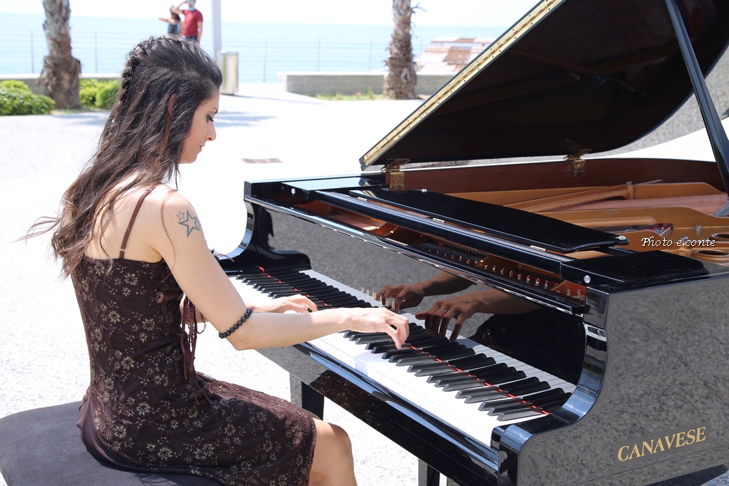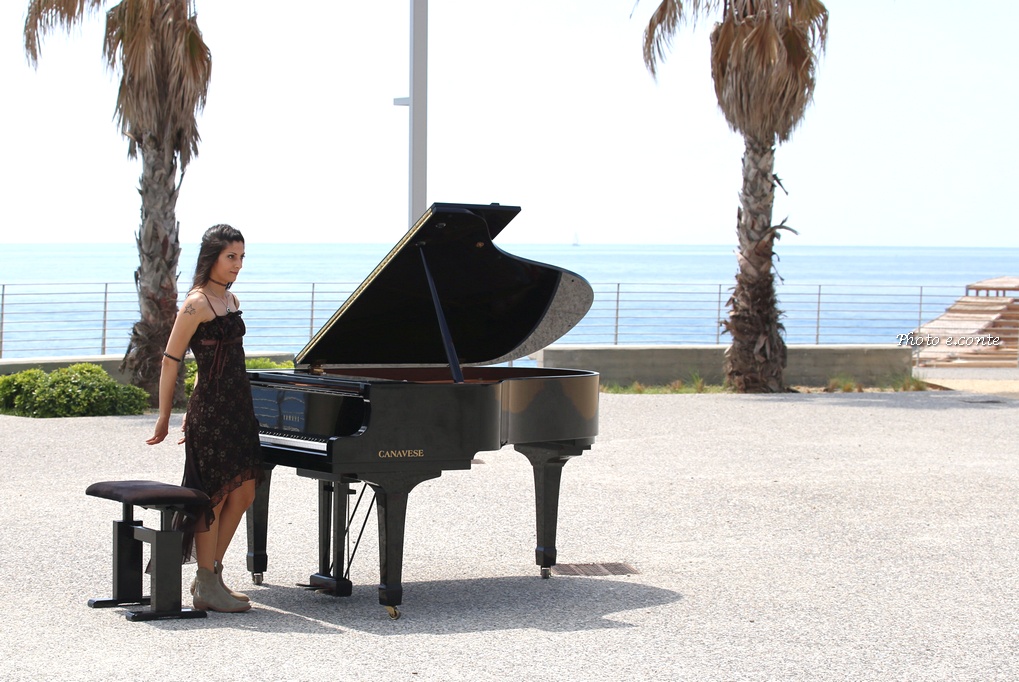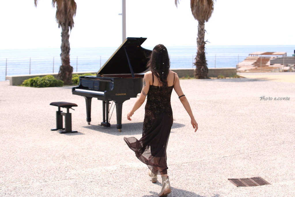 La pianista bordigotta Veronica Rudian questa mattina ha girato un video clip musicale nella città delle palme, sull'affascinante scenario dell'anfiteatro rotonda di Sant’Ampelio, uno dei luoghi più storici e suggestivi della cittadina.