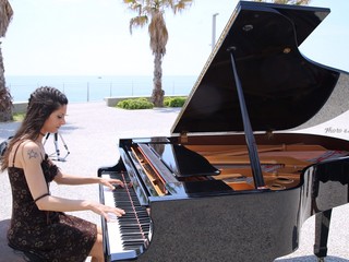 La pianista bordigotta Veronica Rudian questa mattina ha girato un video clip musicale nella città delle palme, sull'affascinante scenario dell'anfiteatro rotonda di Sant’Ampelio, uno dei luoghi più storici e suggestivi della cittadina.