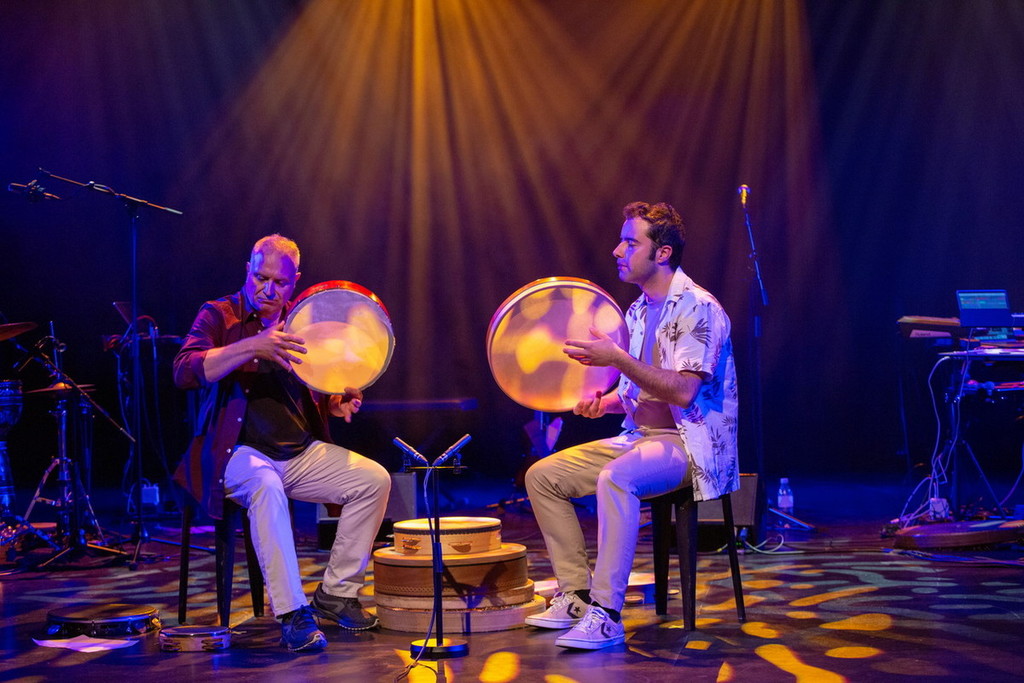 “Il tamburo a cornice non è un semplice strumento a percussione, ma rappresenta una cultura millenaria che attraversa i luoghi del mondo - ha spiegato introducendo il concerto il percussionista partenopeo Michele Maione - Non c'è paese al mondo infatti che non abbia i suoi tamburi a cornice tipici: dal pandeiro brasiliano, al daf dell'Iran e al bendir marocchino fino ad arrivare alla tammorra e al tamburello, i quali appartengono alla nostra cultura tradizionale. Quello che cerchiamo di fare tramite il nostro progetto didattico legato alla musica, è di tracciare un filo rosso attraverso tutte queste culture e anche attraverso il tempo. Prendiamo in prestito i linguaggi del passato, ma soprattutto ci teniamo a vivere quello che è il presente. Per questo sul palco abbiamo sintetizzatori, strumenti elettrici, insieme agli strumenti antichi come possono essere un mandolino o la tammorra”.