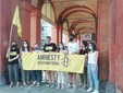 “Il secondo compleanno che passa nelle carceri egiziane - scrivono le Sardine Ponentine- in una delle carceri più dure al mondo, in cui le violazioni dei diritti umani, le crudeltà e gli abusi sono all'ordine del giorno. Per questa occasione, le 6000 sardine con Amnesty International, stationtostation2agosto, coopalleanza_30, l'Università di Bologna e il comune di Bologna hanno dato vita a 1.500 metri di passeggiata sotto ai disegni dell'artista Gianluca Costantini, che ritraggono 50 volti di prigionieri di coscienza, di 13 paesi diversi”.