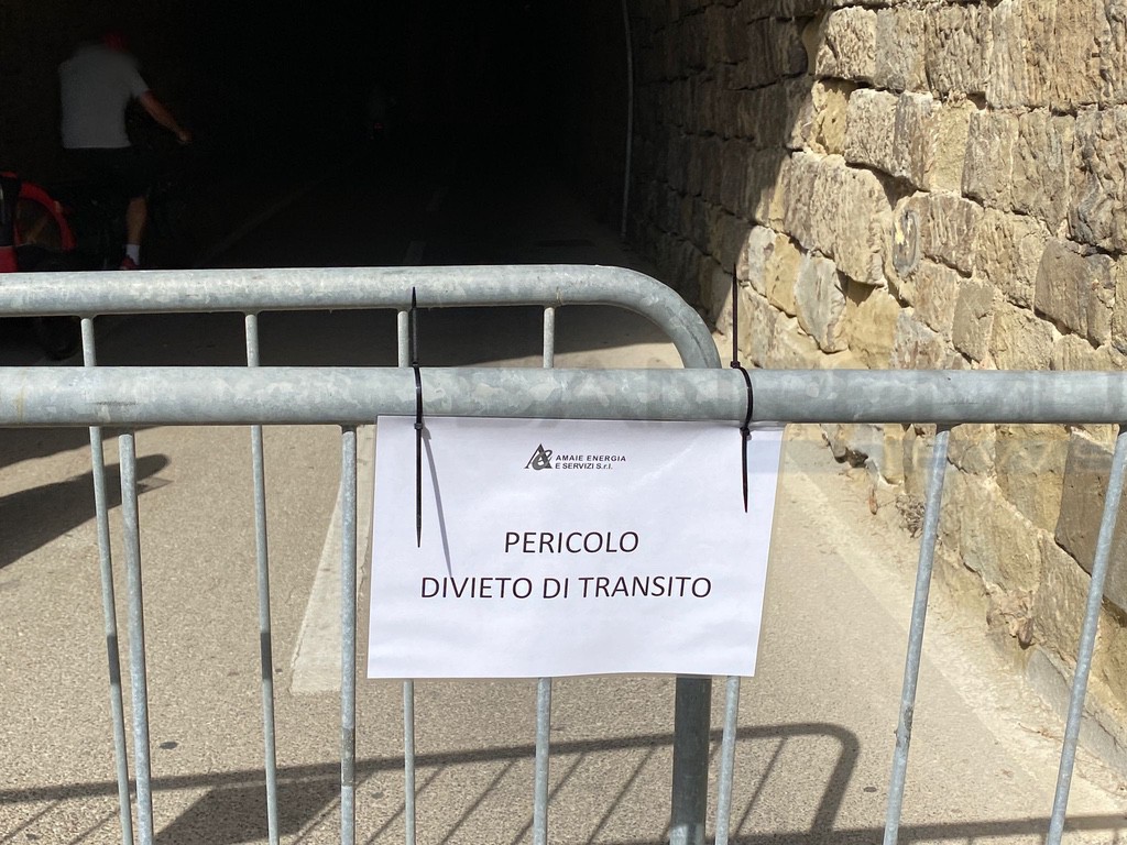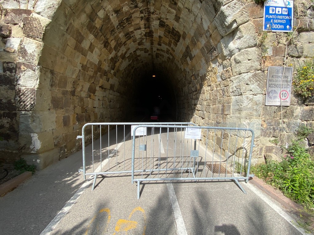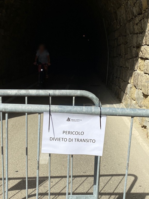 Questa mattina la pista ciclabile è stata chiusa al transito all'altezza di Bussana a Sanremo. Amaie Energia ha collocato delle transenne all'ingresso della galleria di Capo Verde.