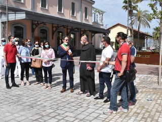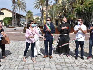 A Bordighera ritorna Piazza degli Eroi della Libertà, (Piazza della Stazione). Questa mattina inaugurazione presieduta dal sindaco Vittorio Ingenito. Un percorso nuovo e dalle linee pulite in cui da protagonista la fanno funzionalità e armonia. La nuova rotonda è il punto centrale colma di essenze vegetali e naturalmente, al centro, a torreggiare, le palme, simbolo della città a salutare gli avventori.
