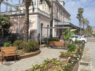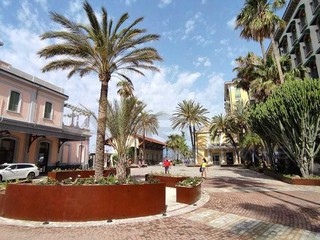 Oltre alle palme che già orlano la piazza si sono aggiunti quattro ‘ginko biloba’ ad alto fusto e per le aiuole, i cui cordoli sono stati rivestiti in acciaio corten, con rose bianche, agapanthus, oleandro, corbezzolo, carissa e pianta del corallo. Occhio di riguardo, ovviamente, anche all’illuminazione pubblica con elementi di design, sia verticali che a raso, con un impianto per ricarica di auto elettriche.
